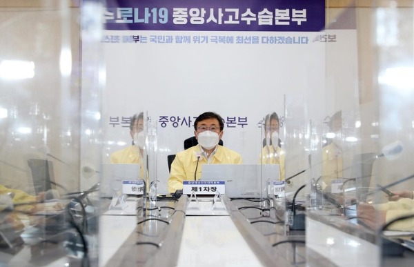 ▲ 권덕철 보건복지부 장관이 15일 오전 세종시 정부세종청사에서 열린 중앙재난안전대책본부회의에 참석해 발언하고 있다. [보건복지부 제공]