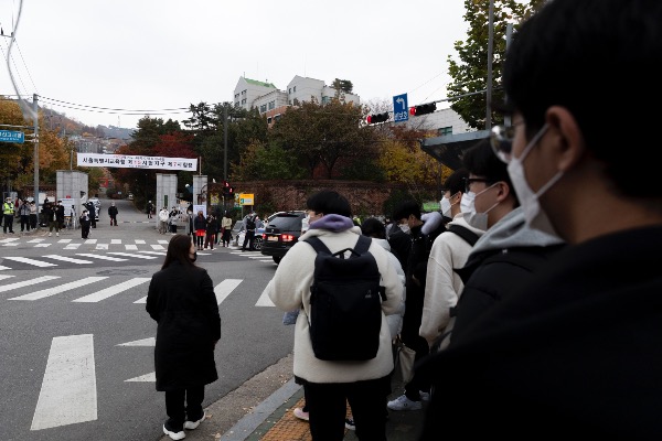 ▲ 18일 서울 용산구 용산고등학교에서 수능 수험생들이 시험장에 들어서고 있다. [문재원 기자]