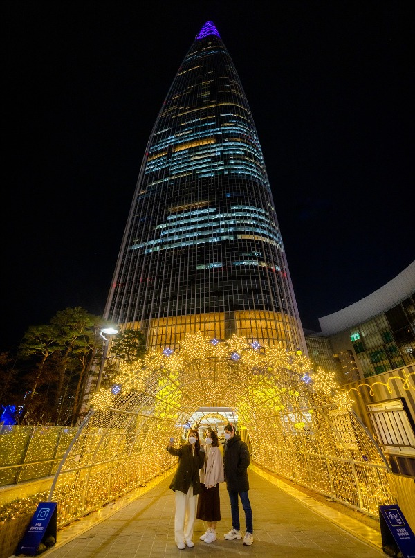 롯데월드타워 높이 555m 외벽 미디어 파사드(외벽 스크린)에는 크리스마스를 상징하는 빨강, 초록, 하얀색의 패턴 조명을 송출해 지상 최대 크리스마스 트리로 만들었다. 12월 26일까지 롯데월드타워가 보이는 곳이라면 어디서든 볼 수 있다.