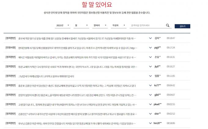 이날 당 홈페이지 자유게시판 '할 말 있어요' 코너엔 홍 의원과 김 전 위원장을 성토하는 글이 쏟아졌다.