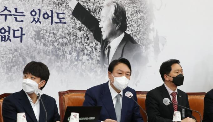 '원톱' 총괄선대위원장이 유력한 김종인 전 비대위원장은 이날 오전 사실상 선대위 합류 거부 입장을 밝혔다. "더는 정치 이야기를 하기 싫다. 일상으로 돌아가겠다"는 것이다. 윤 후보와 갈라서겠다는 의지를 내비친 것이다.