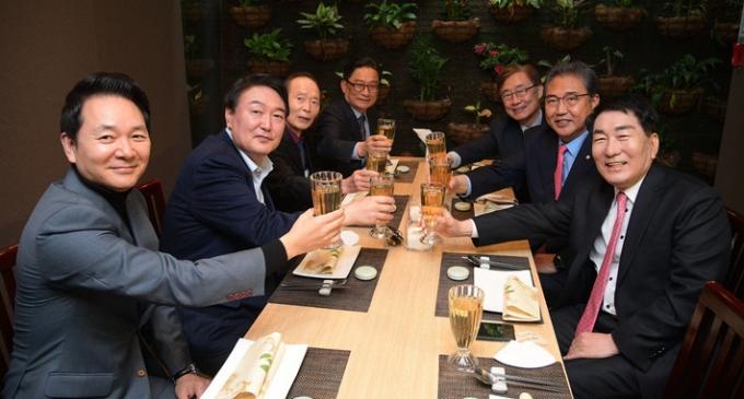 윤 후보는 이날 경선 레이스에 참여했던 후보들과 오찬을 함께하며 결속을 다졌다. 그러나 홍준표 의원, 유승민 전 의원, 원희룡 전 제주지사는 불참했다.