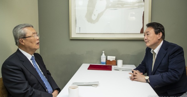두 사람은 이날 "1분 1초를 아껴야한다"(윤 후보), "밖에서 돕겠단 적 없다"(김 전 위원장)며 불편한 심기를 드러냈다. 전날 만찬을 함께했으나 평행선을 달렸다.