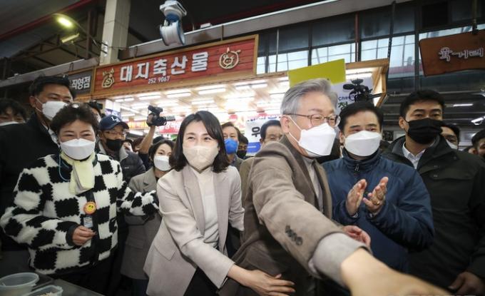 김 씨의 호남행은 이 후보보다 이틀 앞서 지원사격에 나선 모양새다. 그는 지난 21일 충북 청주를 방문할 땐 이 후보의 시장 유세 등에 동행했다. 당시 이 후보는 "충북 사위 말고 충북의 딸이 왔다"며 김 씨와 함께 지지를 호소했다.