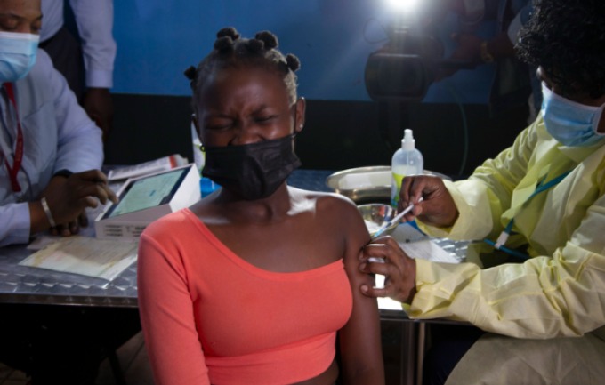 ▲ 지난달 21일 남아공 요하네스버그 인근에서 한 여성이 화이자 백신을 접종받고 있다. [AP뉴시스]
