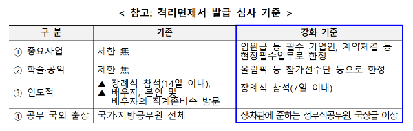 ▲ 3일부터 강화 시행되는 격리면제서 발급 심사 기준. [질병관리청 제공]
