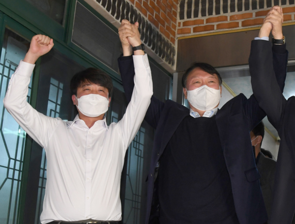 앞서 윤 후보와 이 대표는 전날 울산 울주의 한 식당에서 2시간여의 만찬을 한 뒤 선대위 구성 과정에서 불거진 인재 영입, 소통 문제를 극적으로 해결했다.