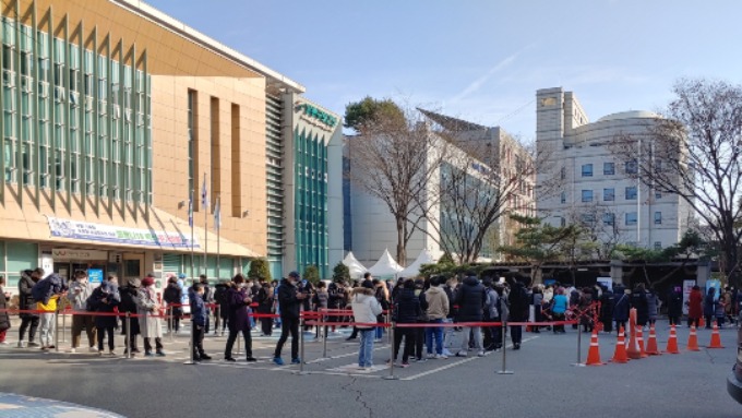 이날 서울의 선별검사소는 혼잡한 모습이었다. 서울 강동구보건소 앞에 마련된 검사소는 몰려든 시민들을 감당하지 못해 오후에는 인근 검사소를 이용하도록 안내했다.