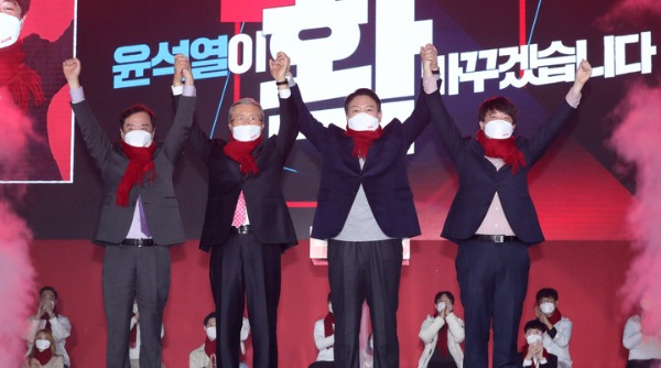 尹 "정권교체 바란다면 서로 생각 달라도 잘 해결해 나갈 것" 국민의힘 윤석열 대선 후보의 선거대책위원회가 6일 공식 출범했다. 후보 선출 후 약 한 달 만이다.