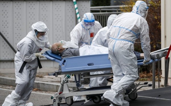 ▲ 지난 9일 서울 중랑구 서울의료원에서 의료진과 구급대원들이 환자를 이송하고 있다. [뉴시스]