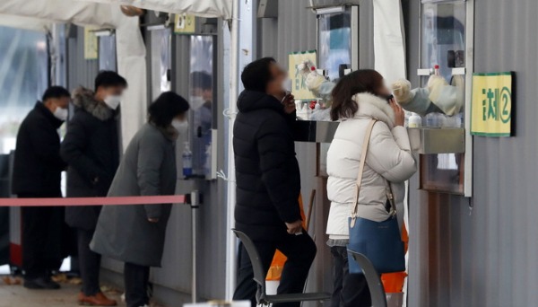 ▲14일 오전 서울시청 앞 서울광장 임시선별검사소에서 시민들이 검사를 받고 있다.[뉴시스]