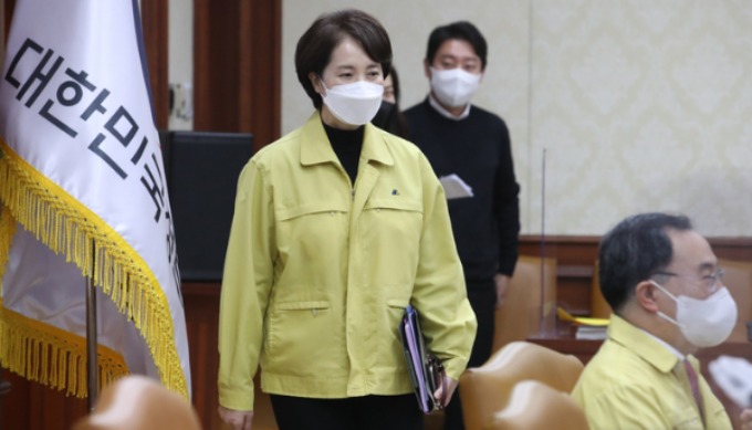▲ 유은혜 사회부총리 겸 교육부 장관이 16일 오전 서울 종로구 정부서울청사에서 열린 제50차 비상경제 중앙대책본부 회의에 참석하고 있다. [뉴시스]