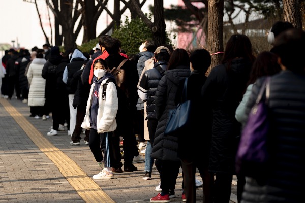 ▲ 16일 서울 송파구 올림픽공원 임시선별검사소에서 시민들이 검사를 기다리고 있다. [문재원 기자]
