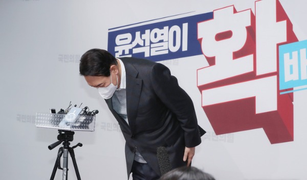 '해명→버럭→사과'…3일 간의 롤러코스터 행보로 비판 국민의힘 윤석열 대선 후보가 17일 배우자 김건희 씨 허위경력에 대해 전격 사과했다. "제가 강조해 온 공정과 상식에 맞지 않았다"며 고개를 숙였다. 의혹이 제기된 지 3일 만이다.