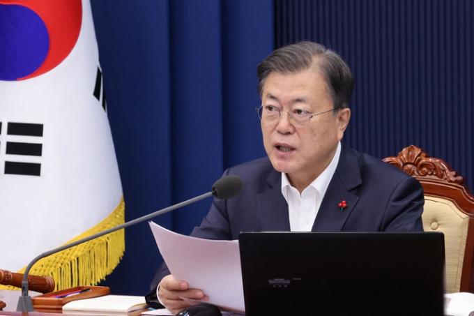 ▲ 문재인 대통령이 21일 청와대 여민관에서 진행된 영상국무회의에서 발언하고 있다. [뉴시스]