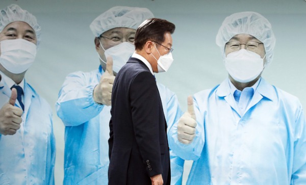 ▲ 더불어민주당 이재명 대선 후보가 22일 서울 여의도 중앙당사에서 과학기술 정책공약을 발표하기 위해 브리핑룸으로 입장하고 있다. [뉴시스]