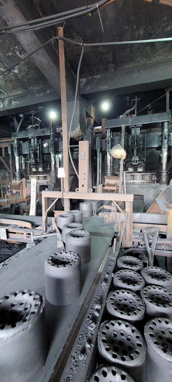 공장 뒤편에는 연탄의 재료가 되는 석탄이 한 때의 위용을 드러내듯 큰 산처럼 쌓여 있었다. 그 뒤로 기찻길이 보였다. 예전에는 기차로 석탄을 나를 정도로 수요가 많았다고 한다. 잠시 뒤 기계가 큰 소음을 내기 시작하며, 연탄이 한 장 씩 모습을 드러냈다. 기계는 잊혀지는 세월을 거스르기라도 할듯한 기세로 활기차게 돌아갔다.