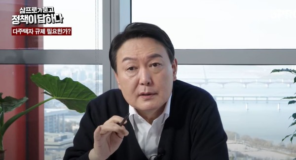 윤 후보는 이날 방영된 경제 전문 유튜브 채널 '삼프로TV'에서 "이 정부가 집값 상승의 원인을 다주택자의 투기수요, 소위 매점매석 때문이라 생각했는데 그 발상 자체가 잘못됐다"고 말했다.
