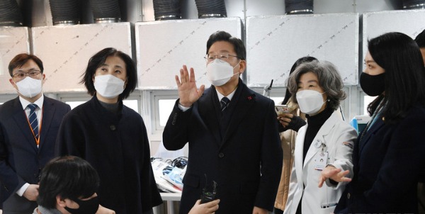 더불어민주당 이재명 대선 후보는 31일 코로나19 방역 상태를 점검하며 올해 마지막 일정을 소화했다. 감염병 대응과 의료불평등 해소를 위한 '공공의료 확충' 공약도 발표했다.