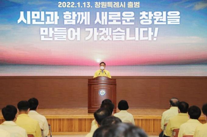 ▲ 허성무 창원시장이 시무식에서 특례시 비전을 선포하고 있다. [창원시 제공]