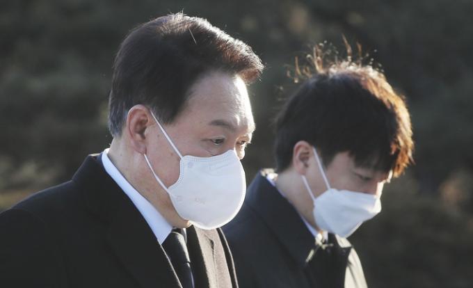 尹·李, 국립현충원 참배…대화 피해 냉랭한 분위기