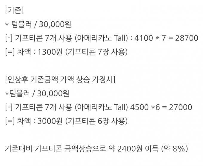 이밖에도 가격 인상 전에 구매한 기프티콘을 활용해 텀블러 등 스타벅스에서 판매하는 제품들을 살 경우 사실상 할인 효과를 볼 수 있다는 글도 온라인상에서 퍼지고 있다.