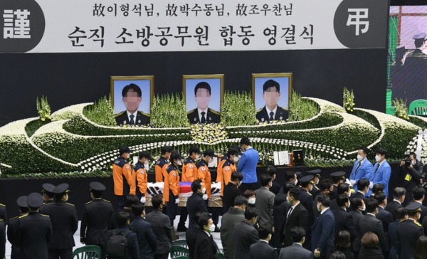 이어 "세 분의 영정 앞에서 소방관들의 건강과 안전을 확고하게 지키겠다고 약속드린다"며 "다시는 이런 일이 일어나지 않도록 사고 원인을 철저히 규명하고, 여러분이 더 안전하게 임무를 수행할 수 있도록 다양한 방안을 마련하겠다"라고 강조했다.