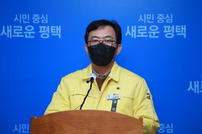 ▲ 김영호 평택시 보건소장이 10일 평택 미군 부대 주변 오미크론 확산에 대해 설명하고 있다. [평택시 제공]
