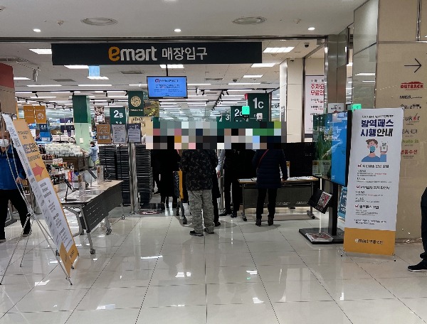 방역패스가 없는 고객들의 입장을 금지한 신세계 백화점과 달리 이마트에서는 계도기간을 안내한 후 입장 시키고 있었다.