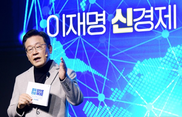 더불어민주당 이재명 대선 후보는 11일 세계 5강의 경제대국으로 도약하겠다는 목표와 로드맵을 제시했다. 서울 여의도 국회 의원회관에서 열린 '신경제 비전 선포식'에서다. '신경제 비전'은 이 후보의 제1공약 '전환적 공정성장'중 전환성장과 관련된 내용이라고 이 후보측은 밝혔다.
