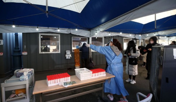 ▲ 11일 오전 서울 중구 서울역광장에 마련된 코로나19 중구임시선별검사소에서 직원이 시민들을 안내하고 있다. [뉴시스]