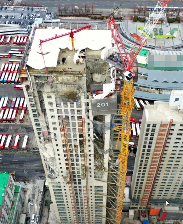 앞서 지난 11일 오후 3시 46분께 광주 서구 화정아이파크 신축 현장에서 201동 39층 옥상 타설 작업 중 23~38층 바닥 슬래브와 외벽 등이 무너져 내리면서 2명이 사상하고, 5명이 실종됐다.