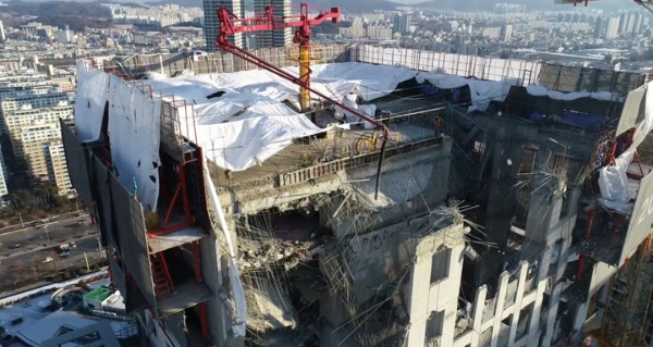 앞서 지난 11일 오후 3시 46분께 광주 서구 화정아이파크 신축 현장에서 201동 39층 옥상 타설 작업 중 23~38층 바닥 슬래브와 외벽 등이 무너져 내리면서 2명이 사상하고, 5명이 실종됐다. 현장 타워크레인 해체가 노동자 작업중지권 행사로 예정보다 닷새 연기되면서 실종된 5명을 찾기 위한 수색·구조 작업은 장기화될 전망이다.