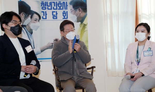 더불어민주당 이재명 대선 후보는 17일 간호사의 업무범위·처우개선 등을 담은 '간호법' 제정에 힘을 실었다.