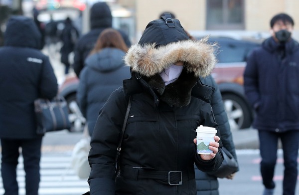 ▲ 서울 아침 최저 기온이 영하 10도까지 내려간 18일 서울 종로구 세종대로사거리 횡단보도에서 한 시민이 길을 건너고 있다. [뉴시스]