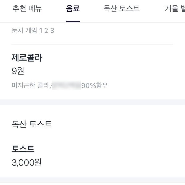 해당 게시글에 첨부된 사진에는 업체명이 '분식_test'라 되어 있어 테스트 중인 페이지임을 짐작할 수 있다. 사진 속 메뉴 설명에는 '보쌈(중): 보X쌈 먹고싶당', '제로콜라: 정X단백질 90% 함유' 등과 같은 성적으로 부적절한 내용이 적혀 있다.