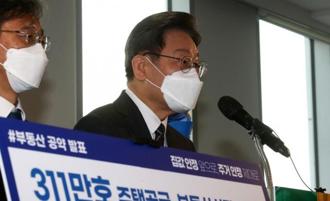 이 후보는 이날 오전 경기 의왕시 포일 어울림센터에서 기자회견을 열고 이전부터 예고했던 대규모 공급 위주의 부동산 공약을 발표했다.