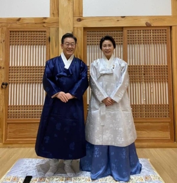 이날 고향인 경북 안동을 찾은 이 후보는 김 씨와 함께 한복을 입고 세배하는 사진을 자신의 페이스북에 올렸다.