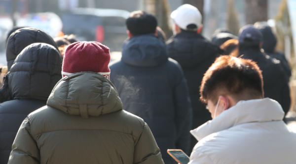 ▲ 지난달 31일 오전 서울 노원구 서울역 노원구민의전당 임시선별검사소에서 시민들이 검사를 받기 위해 대기하고 있다. [뉴시스]