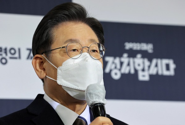 ▲ 더불어민주당 이재명 대선 후보가 3일 서울 여의도 KBS에서 열린 방송3사 합동 초청 '2022 대선 후보 토론'에 앞서 인터뷰를 하고 있다. [뉴시스]