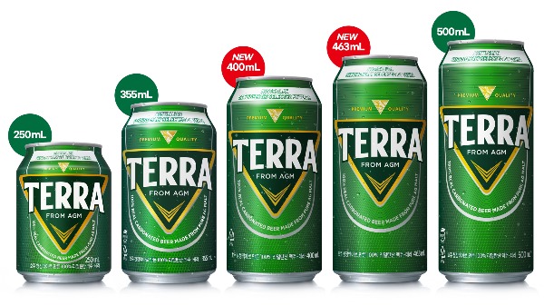 하이트진로의 테라 캔맥주의 용량은 이에따라 250㎖, 355㎖, 400㎖, 463㎖, 500㎖ 등 총 5종이 됐다. 전국 대형마트, 슈퍼마켓 등에서는 8캔들이로 구입할 수 있다.