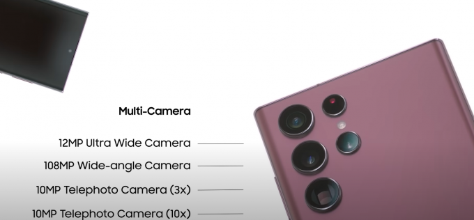 ▲ 갤럭시 S22 울트라의 후면 카메라 모습. ['삼성 갤럭시 언팩 2022' 유튜브 화면 캡처]