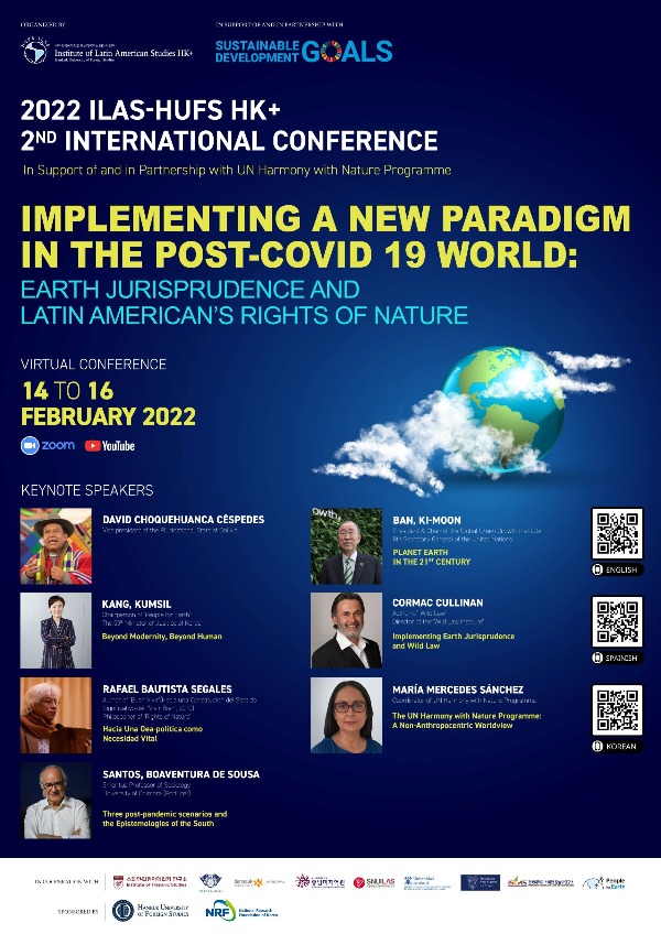 이번 학술대회에서는 반기문 유엔 전 사무총장, 강금실 전 법무부장관, 다빗 초케우안카 세스페데스 볼리비아 부통령, '야생의 법' 저자인 남아프리카공화국의 코막 컬리넌 변호사, 볼리비아의 사상가인 라파엘 바우티스타 세갈레스 '부엔 비비르' 지정학 및 외교정책 총국장, 마리아 메르세데스 산체스 유엔 '하모니위드네이처' 코디네이터, 포르투갈 출신의 세계적인 석학 소우자 산투스 위스콘신대 석좌교수 등 모두 7명의 국내외 저명인사가 기조강연을 할 예정이다.