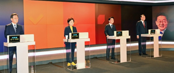 이 후보는 먼저 안 후보에게 "진영을 가리지 않고 유능한 사람과 좋은 정책을 더해 국민이 잘살게 해야 한다. 국민내각, 통합정부가 필요하다"며 "선거 때는 원수로 싸우더라도 이후에는 '원팀'이 되자는 의견이 나오는데 어떻게 생각하느냐"고 물었다.