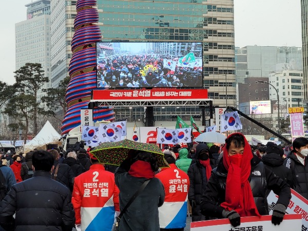 오전 8시 40분부터 열린 출정식엔 영하 10도에 가까운 추운 날씨에도 불구하고 수백 명의 시민이 모여 윤 후보를 응원했다. 지지자들은 '정권교체' 메시지가 담긴 플래카드, 현수막을 들고 '윤석열 대통령'을 환호했다.