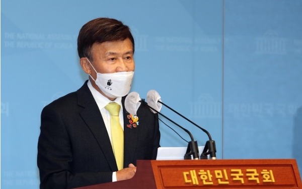 ▲ 김원웅 광복회장이 지난해 5월 21일 오전 서울 여의도 국회 소통관 기자회견장에서 TV조선의 광복회 관련 보도와 관련한 입장을 발표하고 있다. [뉴시스]