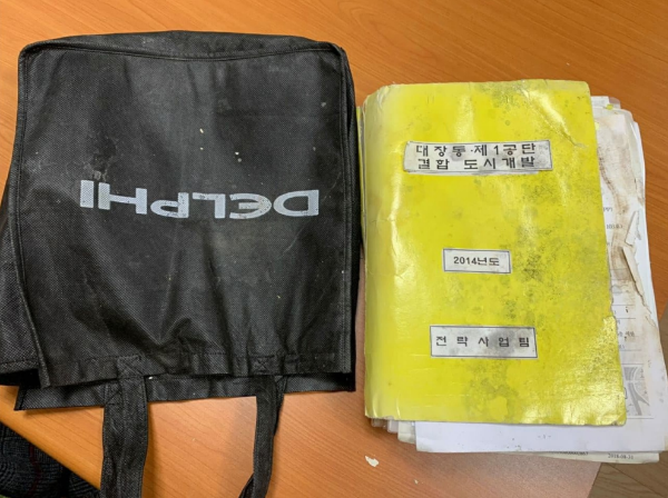 원 본부장에 따르면 문서 보따리는 지난 13, 14일 경기 안양-성남 간 제2경인고속도로 분당 출구 부근 배수구에 버려져 있었다고 한다. 이를 익명의 제보자가 발견해 당에 전달했다는 설명이다.