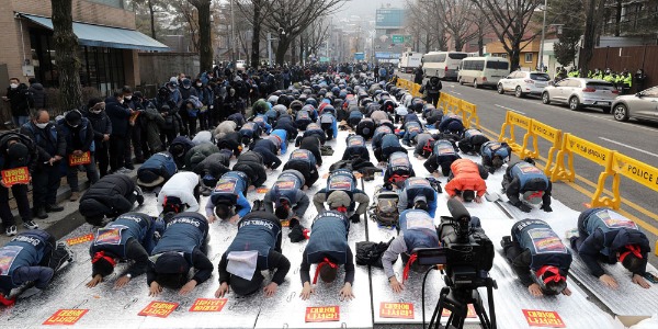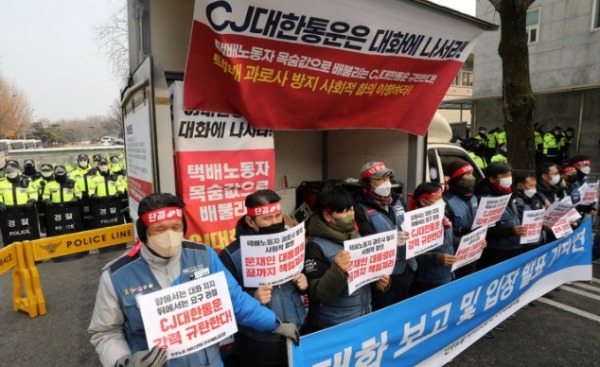 택배노조는 CJ대한통운이 사회적 합의를 이행하지 않고 있다고 주장하며 지난해 12월28일을 시작으로 파업을 진행 중이다. 이들은 사측이 분류인력 투입을 하지 않고 택배요금 인상분을 챙기고 있다고 주장하고 있다.