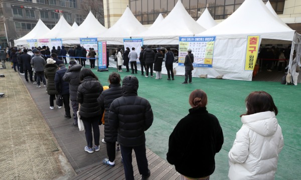 ▲ 25일 오전 서울 송파구 보건소 선별진료소에서 시민들이 검사를 받기 위해 대기하고 있다. [뉴시스]