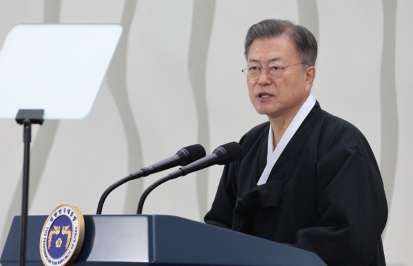▲ 문재인 대통령이 1일 서울 서대문구 국립 대한민국임시정부 기념관에서 열린 제103주년 3.1절 기념식에서 기념사를 하고 있다. [뉴시스]